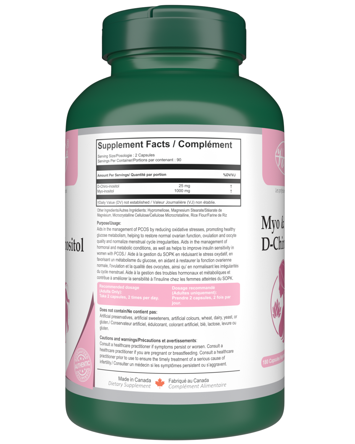 180 VEGAN CAPSULES PER BOTTLE — Convenient daily supplement (2 capsules per serving) designed for women seeking balanced hormones, healthy ovarian function, and antioxidant support backed by trusted Canadian quality.